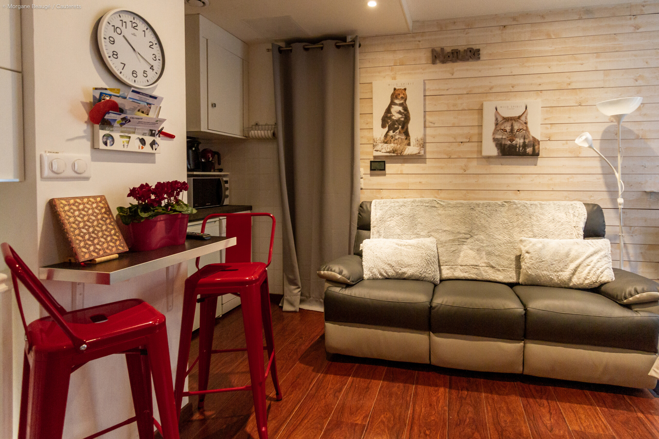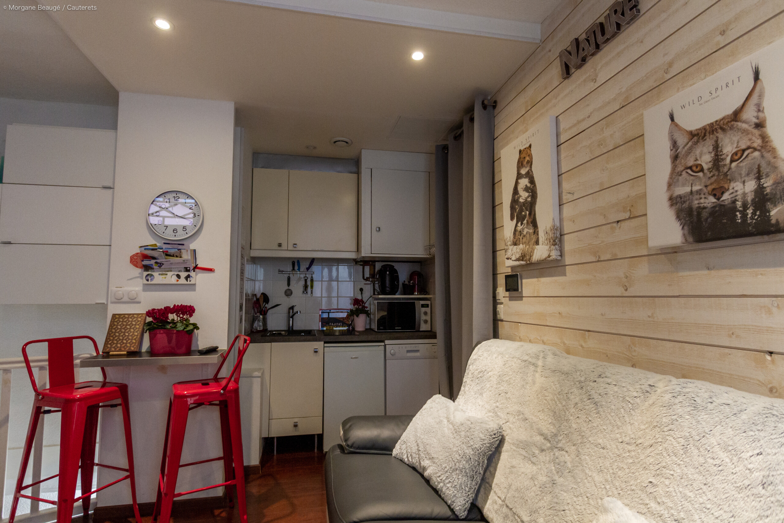 L’appartement vous propose sur 29 m², une pièce de vie comprenant espace repas, coin cuisine, et canapé avec Tv écran plat. Vous y trouverez une cuisine entièrement équipée avec tout l’électroménager. Une chambre avec 1 lit en 140cm, et une alcôve avec 2 lits en 90cm superposés. Une salle d’eau avec douche et vasque. Le logement possède le wifi gratuit avec sa box.