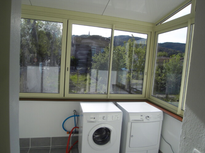 Véranda avec Lave linge et Sèche linge.