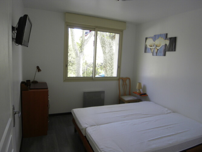 1 chambre 2 lits en 80 électriques commode à tiroir + TV