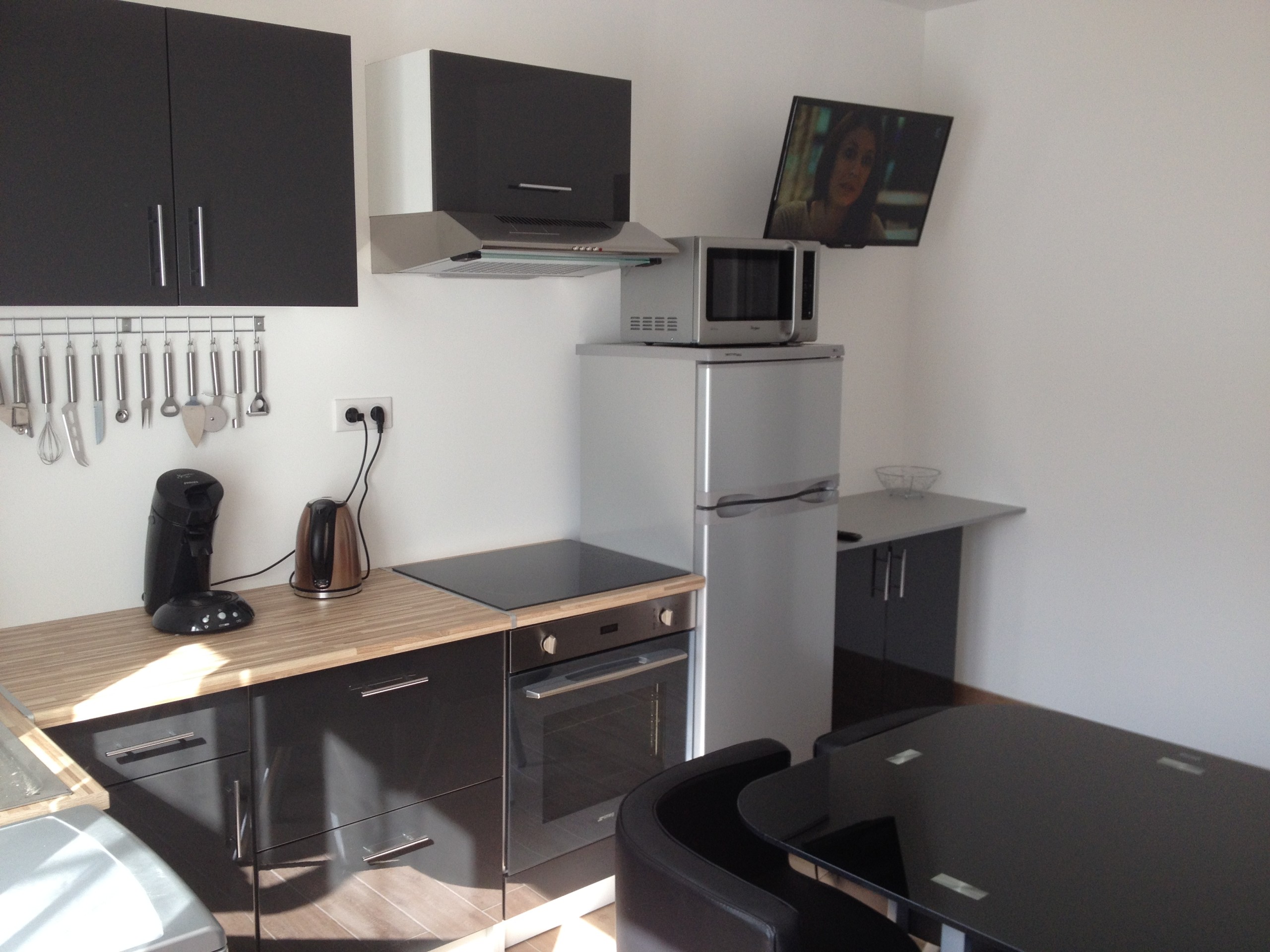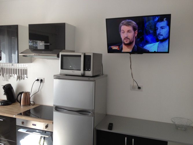 Vous disposerez de toute vaisselle, ustensiles de cuisine grille pain, bouilloire, cafetière Senséo et normale, mixeur, autocuiseur multifonction, friteuse etc etc… .