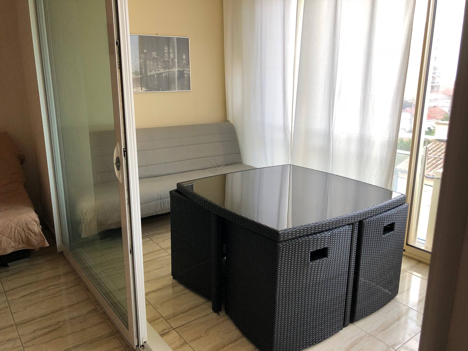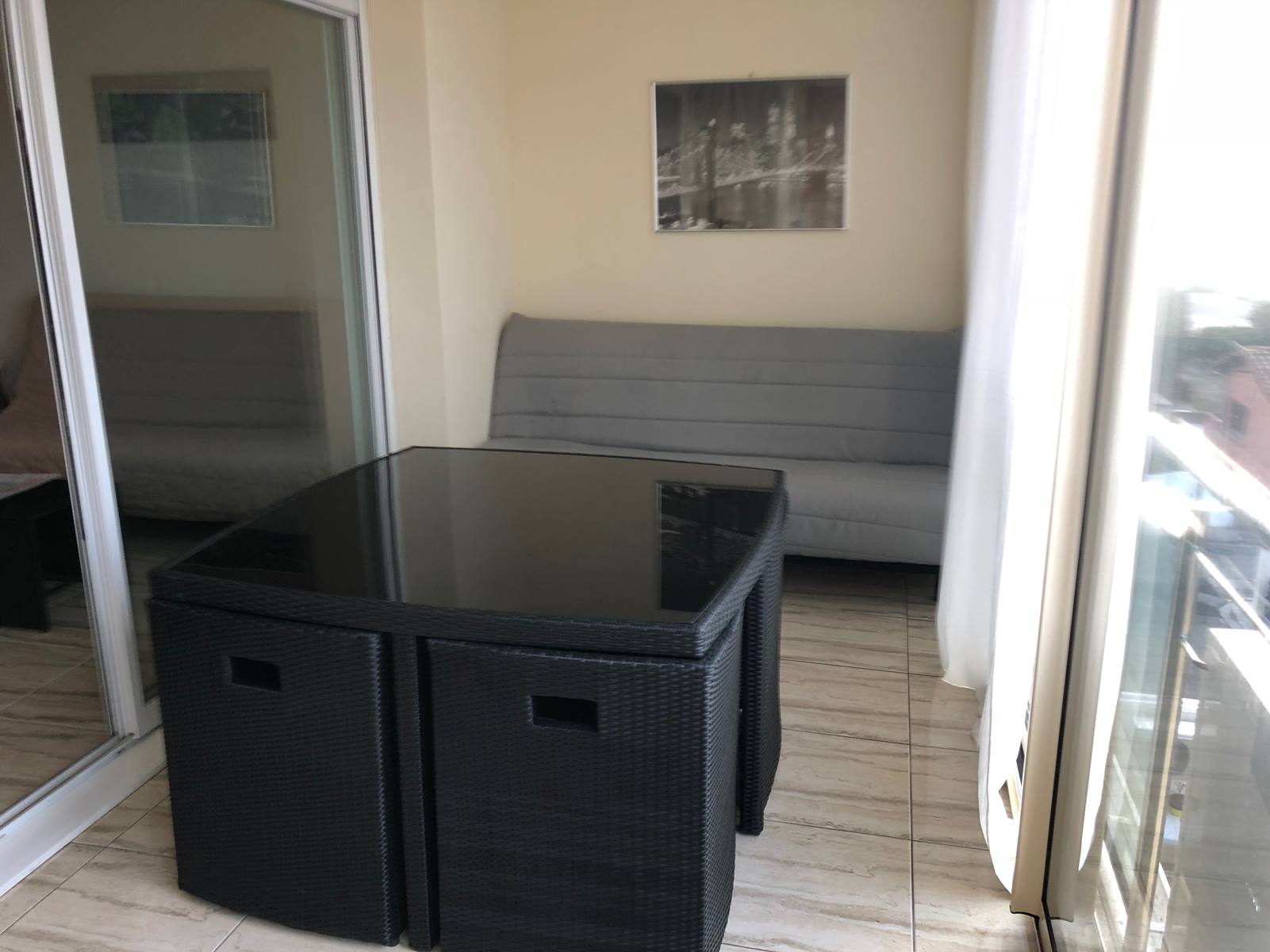 - Extérieur : terrasse-balcon de 18 m² aménagée en véranda, vue mer