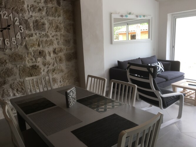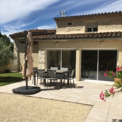 Vous êtes de plain-pied sur une belle terrasse, plein sud, équipée d’un salon de jardin 6 places, d’un grand parasol sur pied. Vous pourrez utiliser un barbecue mis à votre disposition. Le jardin est clos, gage de sécurité si vous avez des enfants en bas âge. Parking privé et parking sur place publique.