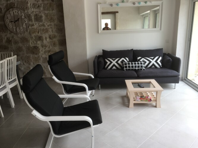 Literie de très grande qualité dans chaque chambre (Ch 1 au RDC, lit 160; Ch 2 étage, lit en 140 et Ch 3 étage sur mezzanine lits 2×80). Plus possibilité d’une place enfant sur 1 chauffeuses de 0,70×1,80. Aussi un lit bébé : lit parapluie.