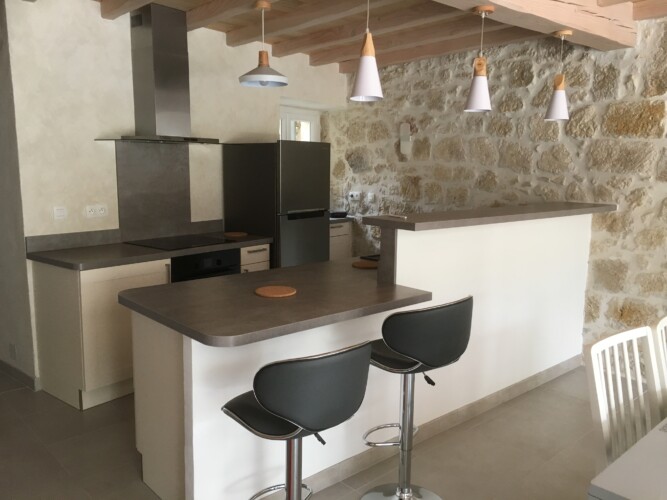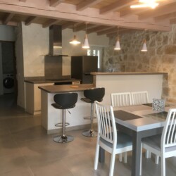 Superbe gîte (classé 3* en hébergement de tourisme) situé dans le petit hameau rural et calme de Balarin, sur la commune de Montréal du Gers. C’est l’aboutissement d’une rénovation récente, mélangeant avec gout le rustique des vieilles pierres, une décoration plus moderne et un équipement très fonctionnel et de grande qualité. Très bien équipé : lave vaisselle, lave/sèche linge, four à pyrolyse, réfrigérateur/congélateur, micro-onde, machine à café classique et machine Nespresso, bouilloire, grille pain, mixeur, … TV 120 cm et lecteur DVD, enceinte Bluetooth.