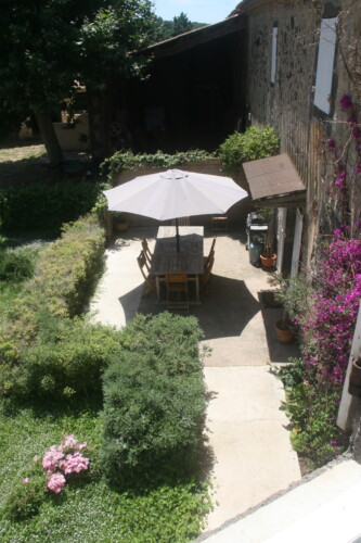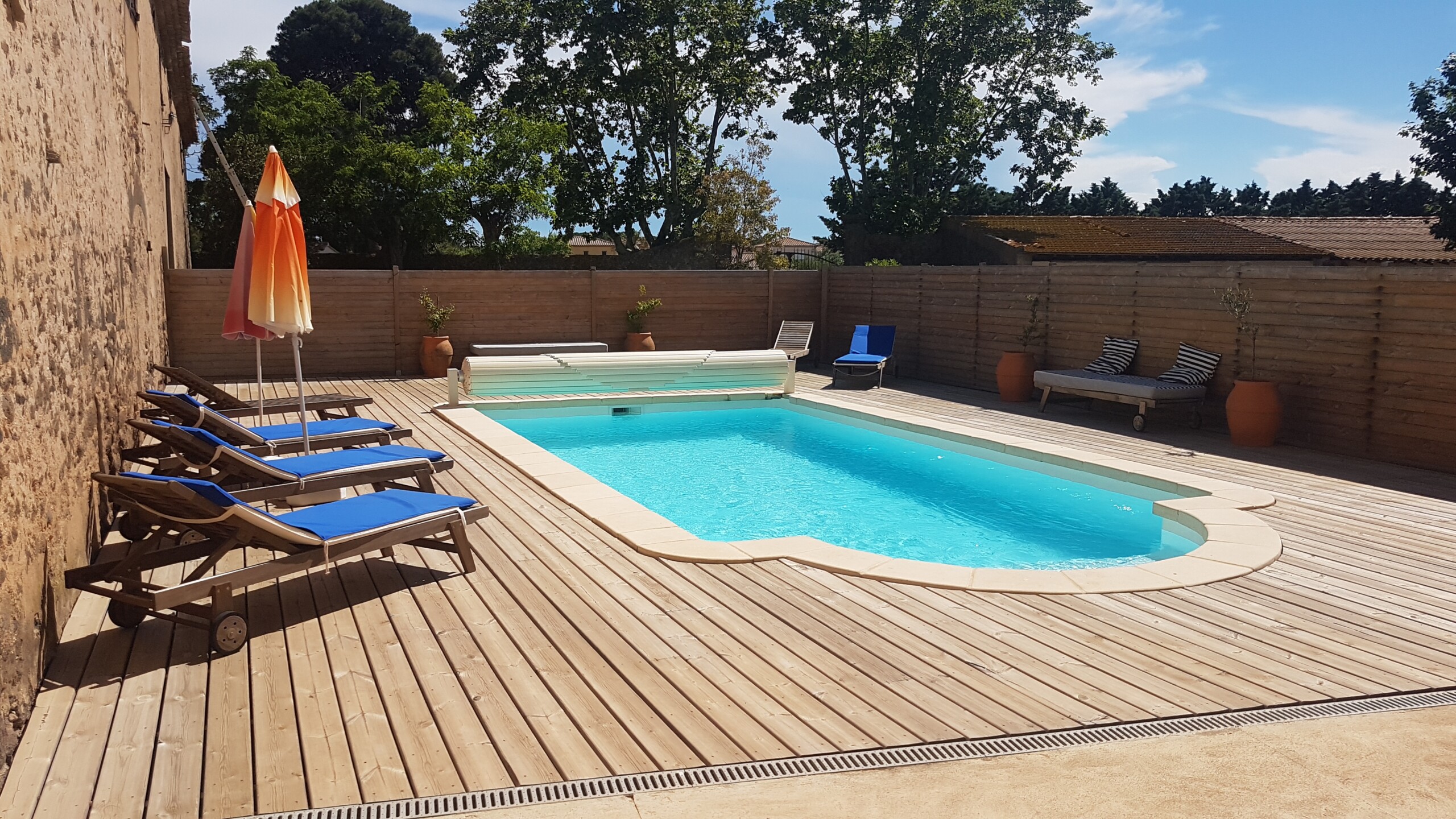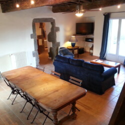 Le gite fait partie intégrante du corps de ferme tout en étant totalement indépendant. C’est une vieille bâtisse construite en pierre volcanique typique d’Agde dans laquelle le gîte a été aménagé récemment. D’une superficie d’environ 100 m² sur 2 niveaux vous trouverez au rez de chaussée: un hall d’entrée, des toilettes, une cuisine toute équipée (vaisselle, cafetière, grille-pain, four traditionnel et micro onde, lave-vaisselle et lave /sèche-linge… ) une grande pièce à vivre regroupant le salon (canapés, TV, home cinéma) et la salle à manger (grande table de 8 personnes). Au premier étage 3 chambres (1 lit en 160 et 2 lits en 140 + 1 lit bébé) et une salle de bain avec WC. 1 terrasses extérieure orientée Ouest, une deuxième orientée Sud Est dans la cour intérieure paysagée ainsi qu’une piscine (8,50 x 4 m profondeur 1,40) entourée de plage en bois d’une centaine de mètres carrés.