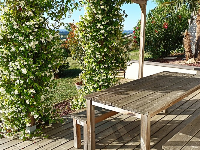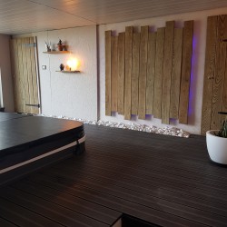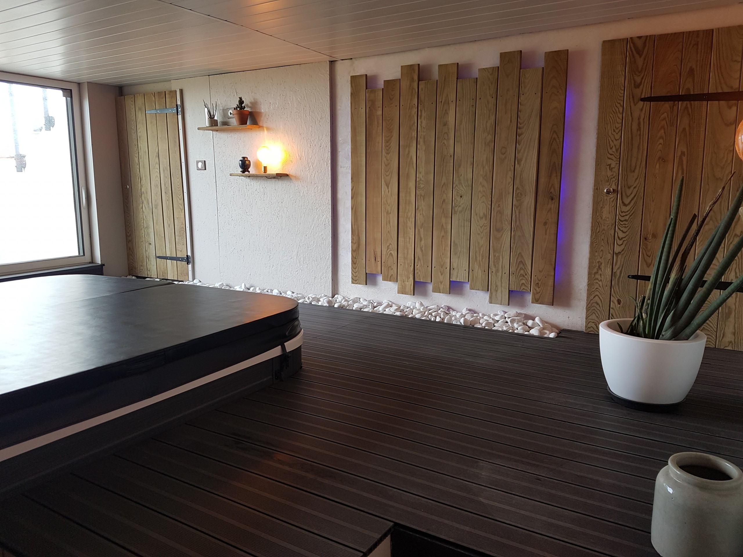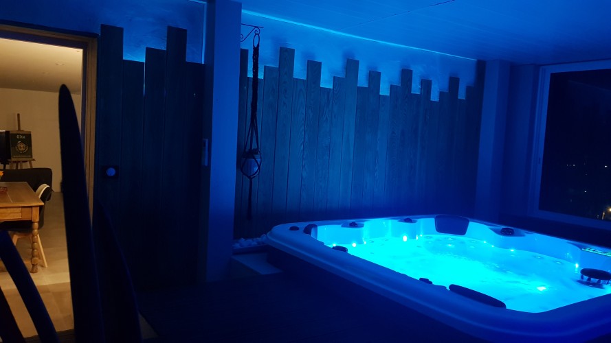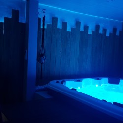 - Le jacuzzi est privatisé au gite. Vous pouvez y accéder de par le gite et de par la terrasse. Cet espace est chauffé l'hiver et climatisé l'été.