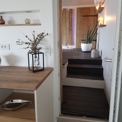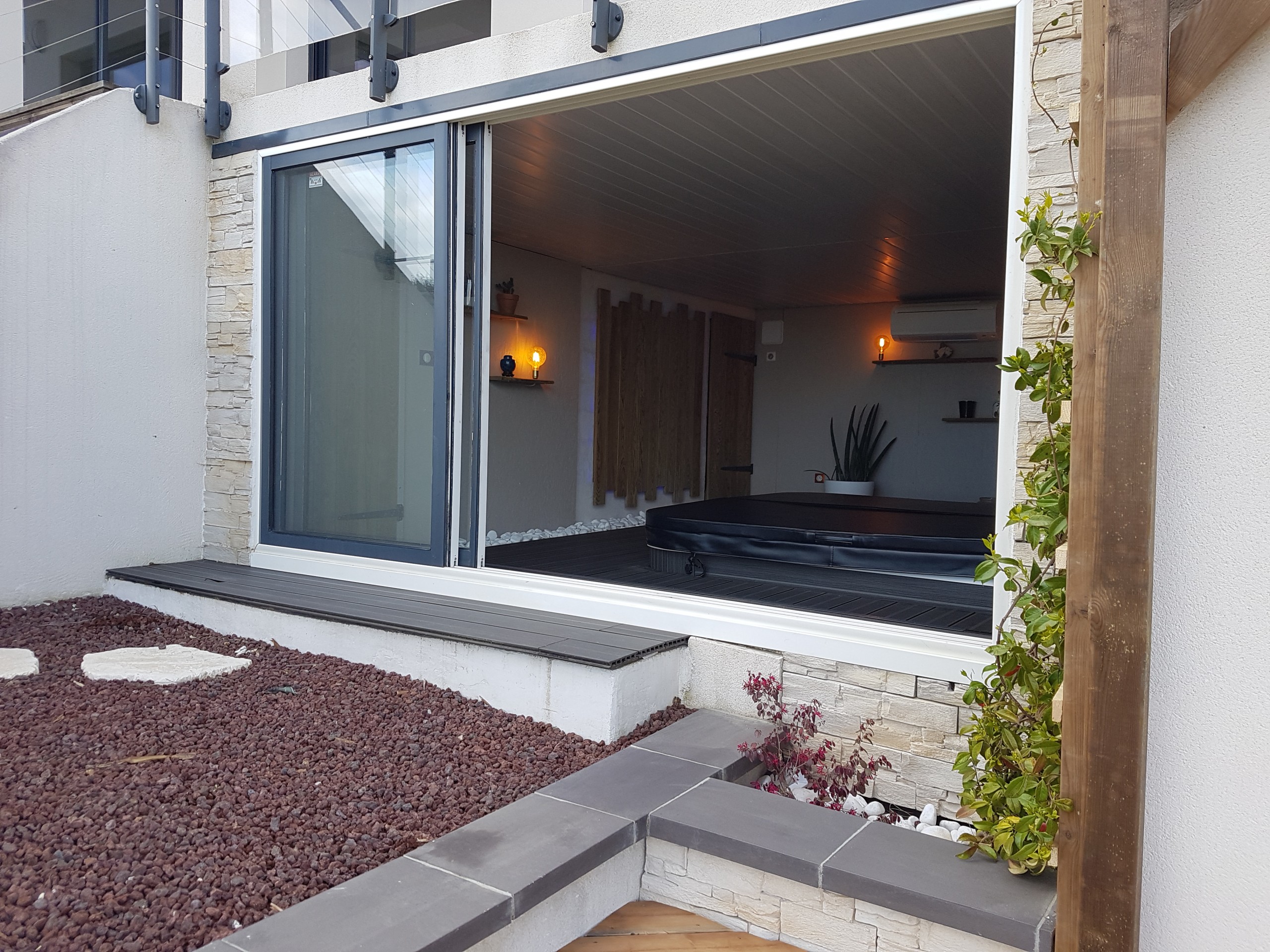Avec un accès direct à l’espace spa (par le séjour et par la terrasse), vous pourrez profiter d’un accès illimité au jacuzzi privatif et de son espace détente équipé de transats (espace chauffé et climatisé).