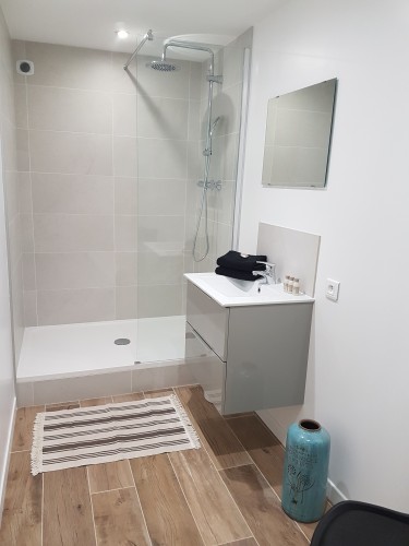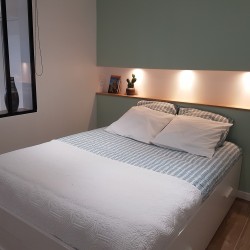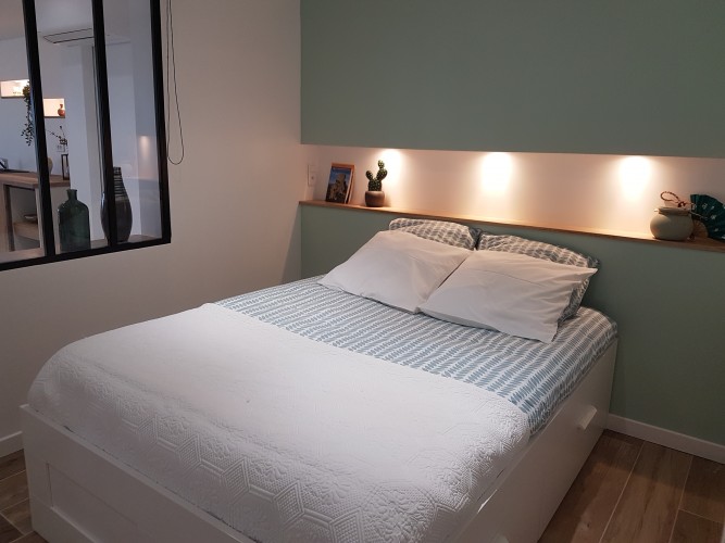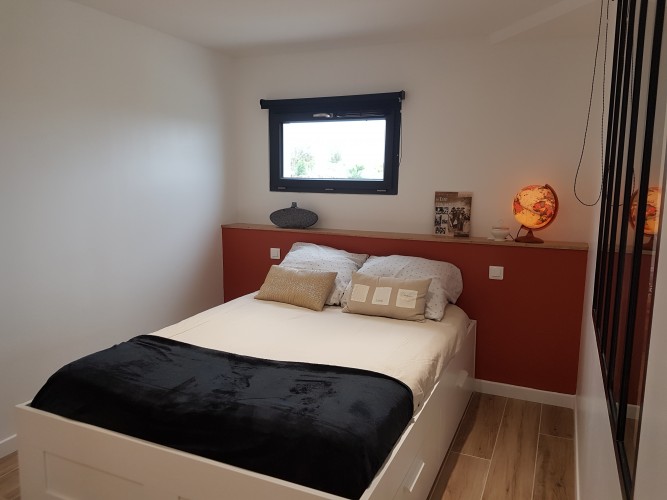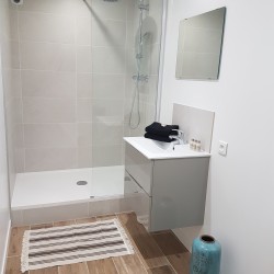 Son espace nuit comprend deux chambres à coucher avec un lit de 140*190 (lit fait à l’arrivée) et d’une salle de douche (douche et WC) pour chacune des chambres.