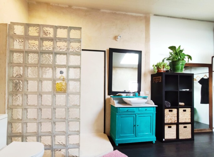 – une belle salle de bains avec douche italienne et toilettes, un grand dressing pour déployer vos valises.