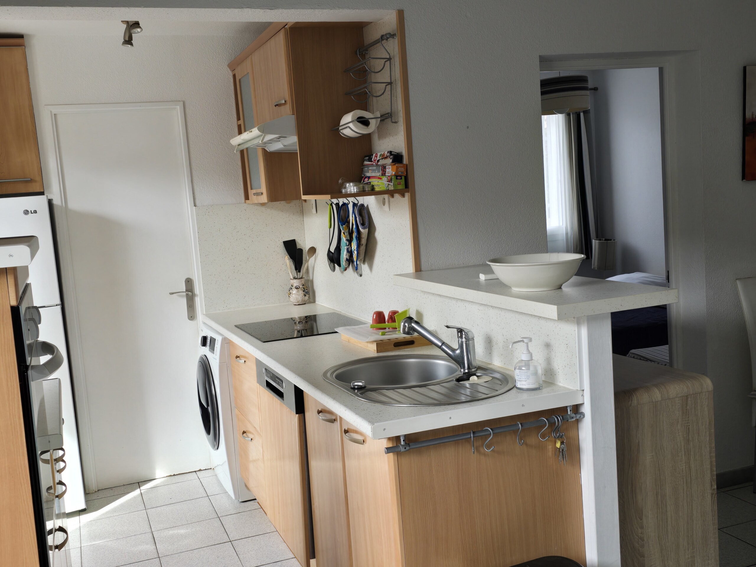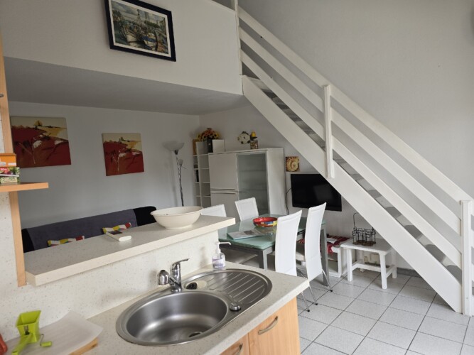 Au Rez de chaussée: Séjour avec canapé-lit 140, TV Coin cuisine équipé (lave-linge, lave-vaisselle, Micro-ondes, four et plaque électrique à induction, réfrigérateur-congélateur etc…) Chambre lit 2 personnes, Salle d’eau avec douche à l’italienne et WC