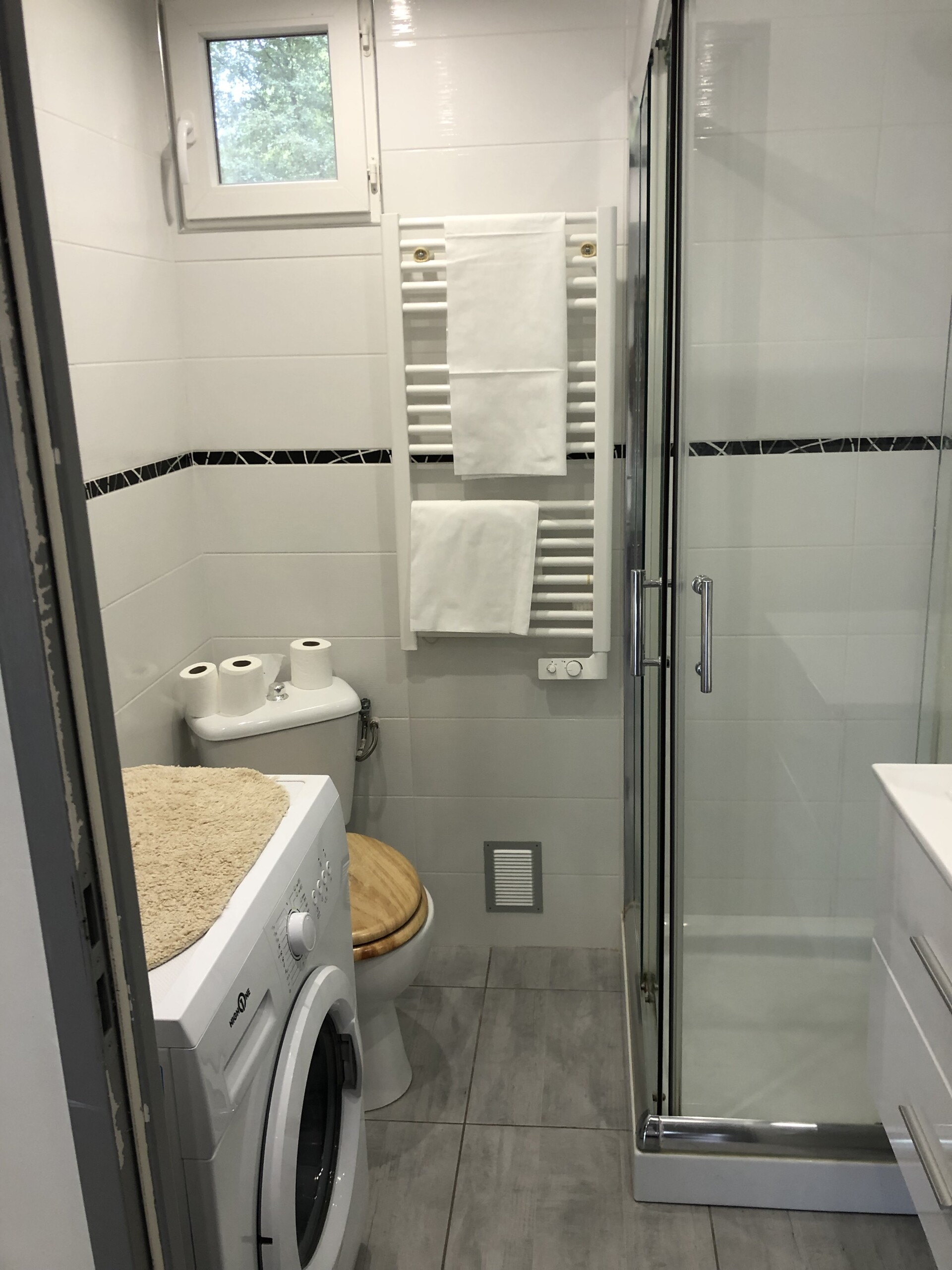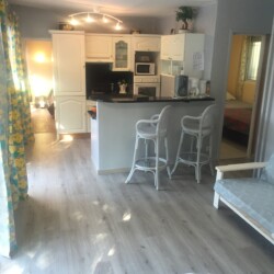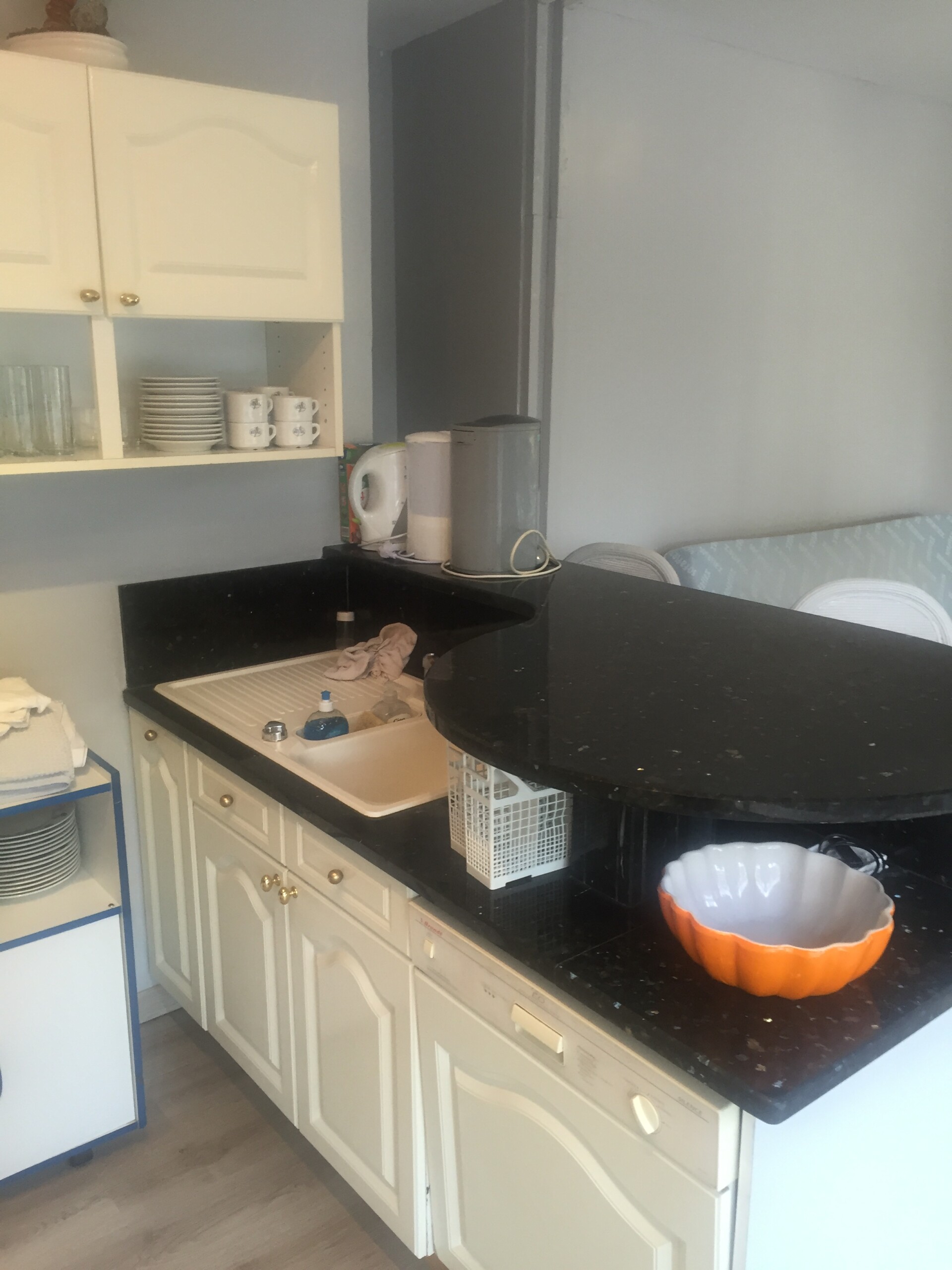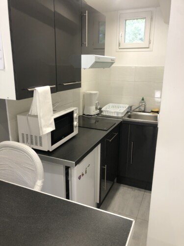 Séjour cuisine 35 m2 entièrement équipées: ( 2 cuisines), 1 lave vaisselle 4 laves linge , 4 micros onde , fours, 2 plaques vitro, frigos congélateur ustensiles de cuisine , M.café, bouilloire, grille pain etc…