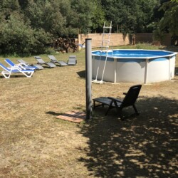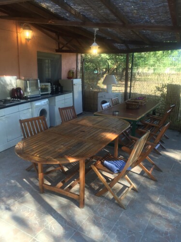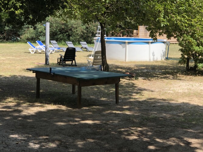 TERRASSE 80 m², entièrement équipée avec sa cuisine d’été extérieur , 1 plaque gaz, ustensiles de cuisine , 1 frigo, congélateur , double évier. Ensemble Teck, Transats, 1 Table 3 M x 1.20 M, chaises 15 pers, fauteuil de salon pour 8 pers, table basse, BARBECUE, Balançoires , jeux enfants ping-pong. ) Piscine privée de 10 m x 5 m
