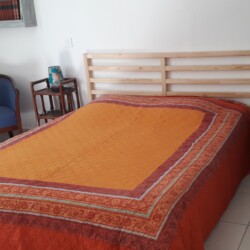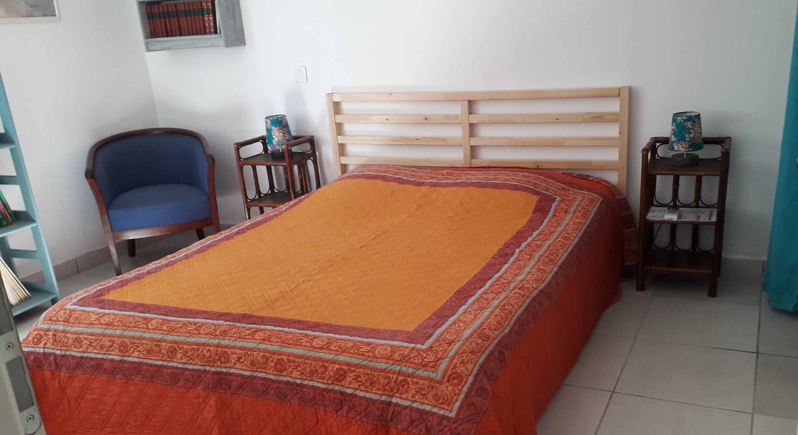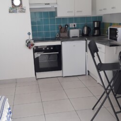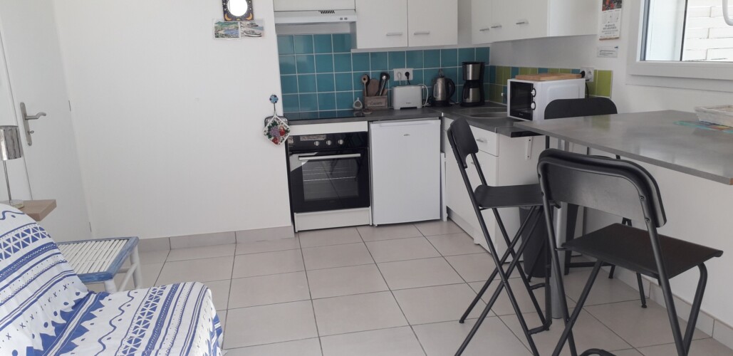 La chambre a un lit de 160 cm, la kitchenette possède une plaque induction 3 feux, un four, un micro-ondes et un grille-pain.